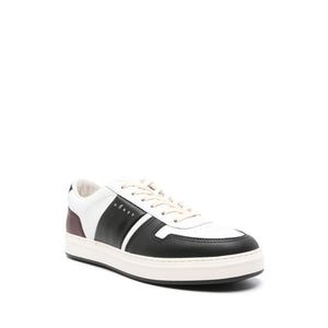 حذاء من جلد العجل باللون الأبيض/الأسود/البني الفاتح مع مقدمة حذاء مثقبة وشعار محفور على اللسان وطباعة الشعار على الجانب وإغلاق برباط في الأمام وأصابع مستديرة ونعل داخلي يحمل العلامة التجارية ونعل مطاطي مسطح المقاس والملاءمة - كعب 1.2 بوصة / 3 سم؛ منصة 1 بوصة / 2.5 سم