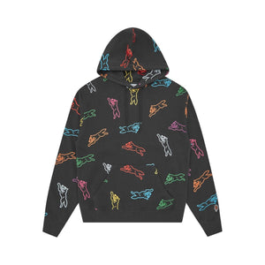 black multicoloured graphic print hooded design ribbed cuffs kangaroo pocket Running Dog Popover hoodie