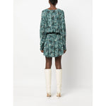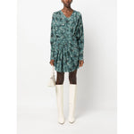 Fontana printed short dress from IRO featuring green, abstract pattern print, draped detailing, scoop neck, long sleeves, concealed side fastening and rear curved hem. Fontana printed short dress Size and Fit - This piece fits true to size. We recommend you get your regular size. Model is 1,75m / 5ft 8in wearing size 36 (FR)