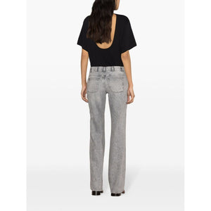 black crepe texture wrap design cowl effect halterneck side zip fastening sleeveless open back straight hem Barni denim jeans Size and Fit - This piece fits true to size. We recommend you get your regular size. Model is 1,75m / 5ft 8in wearing size 27 (WAIST CM)
