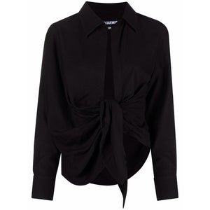 black draped detailing knot detailing classic collar long sleeves La Chemise Bahia shirt Size and Fit - This piece fits true to size. We recommend you get your regular size. Model is 1,75m / 5ft 8in wearing size 36 (FR)