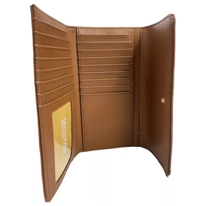 محفظة مايكل كورس جيت سيت ترافل كبيرة من الجلد المبطن بثلاث طيات باللون البني