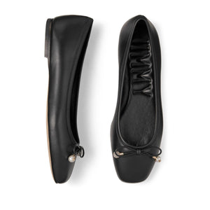 black leather bow detailing square toe branded insole flat sole Elme flat leather ballet flats Size and Fit - Heel 0,2 in / 0,5 cm