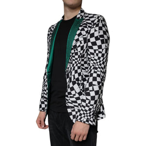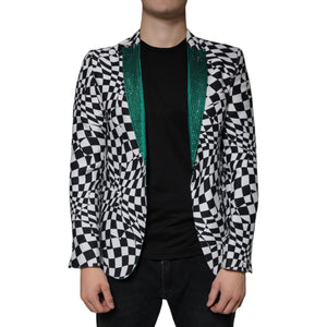 • John Richmond Black White Checkered Crystal Single Breasted Blazer
