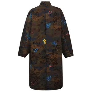 Cappotto verde, lungo, oversize, con stampa botanica, reversibile. Petra camouflage print ovesized coat Size and Fit - This piece fits true to size. We recommend you get your regular size. Model is 1,75m / 5ft 8in wearing size S