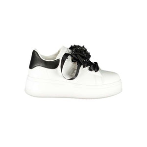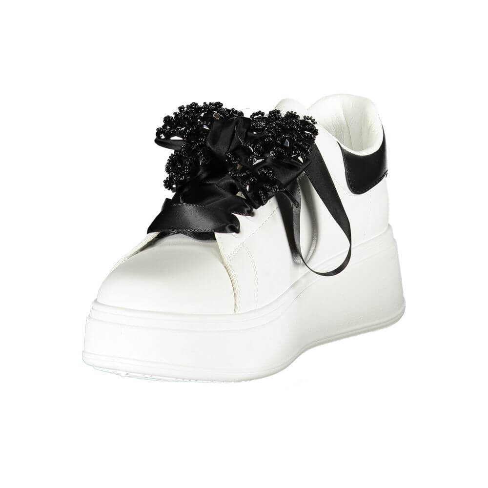 Step into the fashion-forward world of Laura Biagiotti with this dazzling pair of sneakers that fuse comfort and style in a unique silhouette. With its sharp contrasting details and removable rhinestones, this shoe brings a touch of glamour to your everyday ensemble. Elevate your casual chic with the subtle 4 cm wedge while enjoying the practicality of a removable insole for bespoke comfort. Embracing the iconic logo of Laura Biagiotti, these sneakers are not just footwear, they’re a statement.
