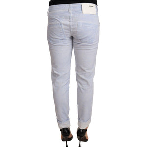 بنطلون جينز من القطن باللون الأزرق الفاتح بفتحة أمامية