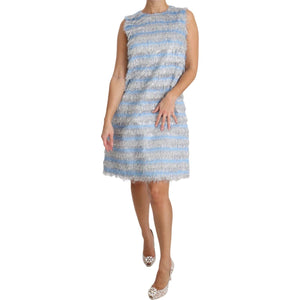 فستان دولتشي آند غابانا الأنيق ذو الحواف باللون الأزرق الفاتح