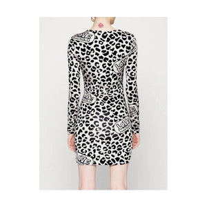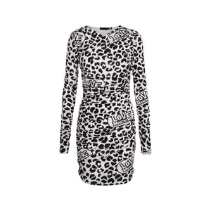 Unleash your daring fashion spirit in this Love Moschino short dress, where bold meets sophistication. The white backdrop becomes a canvas for the tantalizing red leopard print, laced with Love Moschino’s iconic logo for a touch of designer authenticity. The V-neckline and ruffle accents bring a playful twist to its figure-hugging silhouette, making every moment feel like a catwalk. Whether it’s a night out or a chic event, this dress promises to turn heads and set trends.