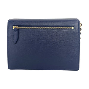 المزايا: طباعة مربعات، أجزاء معدنية ذهبية، أزرق ريجينسي، جيب داخلي بسحاب