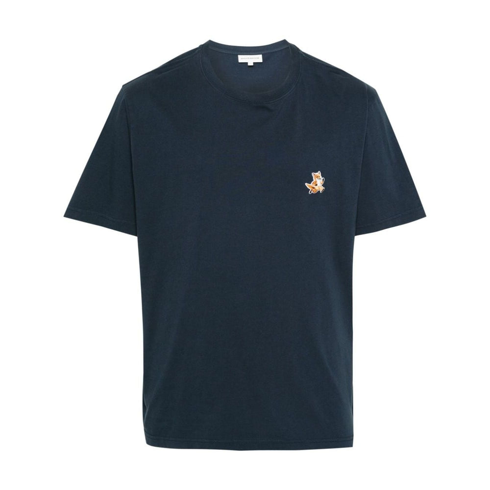 midnight blue cotton jersey texture signature fox patch at the chest crew neck short sleeves straight hem unlined Speedy Fox cotton t-shirt Size and Fit - This piece fits true to size. We recommend you get your regular size. Model is 1,84m / 6ft 1in wearing size M