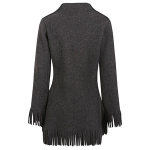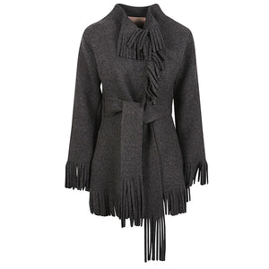grey, solid colour, long sleeves with fringed cuffs, crew neck, belt closure, snap button, raised stitching as decoration, fringed hem. Wool and cashmere jacket Size and Fit - Questo articolo veste la taglia indicata. Ti suggeriamo di prendere la tua taglia. Il modello è alto 1,84m e indossa taglia M