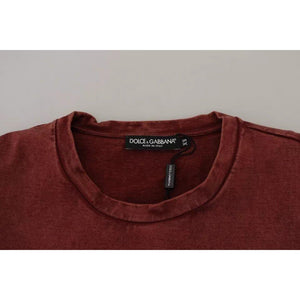 تي شيرت Dolce & Gabbana Maroon Printed Crewneck من القطن