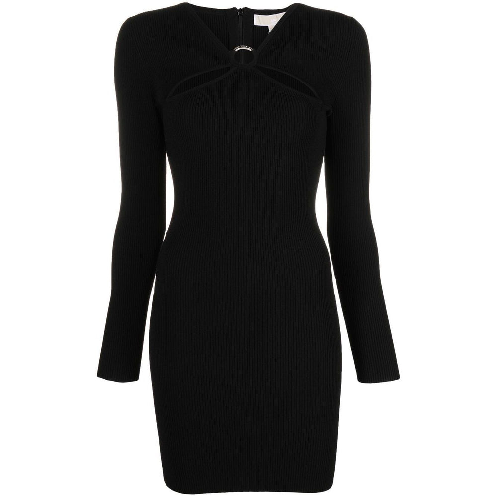 ribbed-knit mini dress from MICHAEL MICHAEL KORS featuring jet black, recycled viscose, ribbed knit, cut-out detailing, round neck, rear zip fastening, long sleeves and straight hem. Conscious: This item is made from at least 50% recycled or upcycled materials. For recycled synthetic clothing products we highly recommend using a microfibre-catching washing bag to ensure that no microplastics that can pollute water are released in the process.. Mini dress Size and Fit - This piece fits true to size. We recommend you get your regular size. Model is 1,75m / 5ft 8in wearing size S