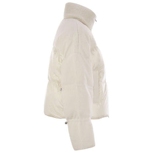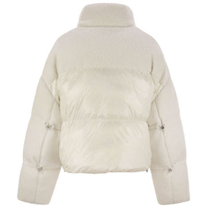 Moose Knuckles short nylon down jacket with duck down padding, zip and button fastening, two side pockets and drawstring hood