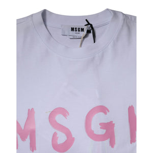 • MSGM White Logo Print Cotton T-shirt Short Sleeves Mini Dress