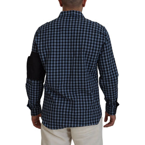 قميص رجالي من Dsquared² بأكمام طويلة ومطرز بنقشة مربعات سوداء متعددة الألوان