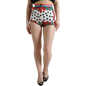 بنطلون قصير من الحرير متعدد الألوان من دولتشي آند غابانا بخصر مرتفع