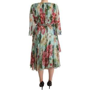 فستان دولتشي آند غابانا متوسط الطول من الحرير المزين بالزهور