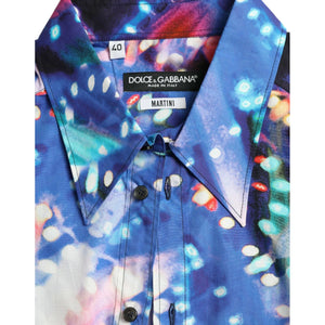 مذهل تمامًا، أصلي 100%، جديد تمامًا مع علامات Dolce & Gabbana، قميص بطباعة لوميناري يتميز بياقة مدببة مصنوعة من القطن.