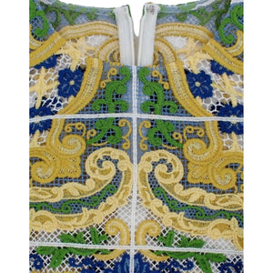 انغمس في روعة Dolce & Gabbana الفنية مع هذا القميص المذهل بدون أكمام والمطرز من Majolica، وهي قطعة تجسد بشكل جميل الفخامة والحرفية لمجموعة MainLine الحصرية. هذا القميص ليس مجرد ثوب؛ إنها قطعة فنية يمكن ارتداؤها، وتتميز بتطريز يدوي معقد، وأنماط Majolica النابضة بالحياة متعددة الألوان، وإبداع إيطالي لا تشوبه شائبة. سحاب خلفي متطور يضفي لمسة نهائية على هذه القطعة النادرة والحصرية التي لا يمكن إنكارها، وهي مثالية لأولئك الذين يبحثون عن منتج مميز مشبع بالرقي.