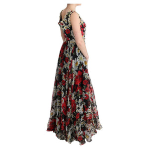 فستان ماكسي من دولتشي آند غابانا بطبعة زهور عباد الشمس والكريستالات