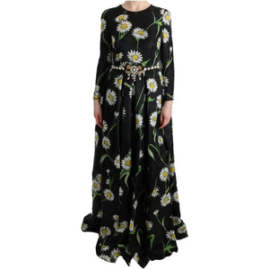 فستان ماكسي أنيق من دولتشي آند غابانا بطبعات عباد الشمس مع كريستالات