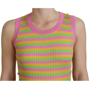 تمتع بالفخامة مع هذه السترة الرائعة بدون أكمام من دولتشي آند غابانا . العلامة التجارية الجديدة مع العلامات، هذه السترة الأصلية 100% هي مثال للأزياء الراقية. مصنوع من أجود أنواع الحرير، ويوفر راحة فائقة ولمسة نابضة بالحياة لخزانة ملابسك بفضل تصميمه الجذاب متعدد الألوان، الذي يضم الأخضر والوردي والأصفر. يسمح الطراز بدون أكمام بتصميم متعدد الاستخدامات، وهو مثالي للارتداء مع طبقات أو ارتداؤه بمفرده خلال تلك الأيام الدافئة. صُنع هذا القميص بدقة في إيطاليا، وهو شعار أنيق للأناقة والرفاهية مع تفاصيل الشعار الدقيقة التي تضيف لمسة نهائية مميزة.