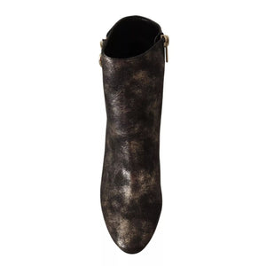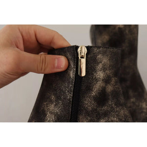 MY TWIN Black Leather Block Heels Ankle Boots Zipper Shoes