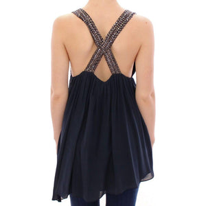 بلوزة أنيقة بدون أكمام باللون الأزرق الداكن من Anaikka