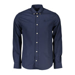 Dress with purpose and unmistakable style in this North Sails long-sleeved shirt. Crafted for the eco-conscious and fashion-forward, it boasts a classic regular fit with a button-down collar that exudes smart-casual elegance. The precise embroidery and prominent logo detail reflect your affinity for brand heritage and sustainability, thanks to the recycled fibers. Ideal for the man who takes his wardrobe choices seriously, this blue shirt is a testament to both aesthetics and ethics.