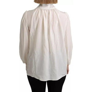 بلوزة دولتشي آند غابانا أوف وايت بأكمام طويلة ورقبة دائرية من الحرير