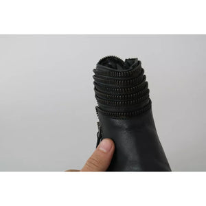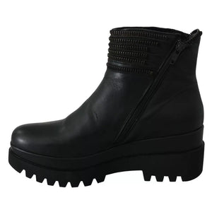 Ovyé Black Leather Zipper Ankle Boots Shoes