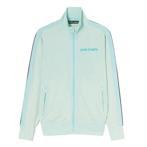 Elevate your style with this striking Palm Angels track jacket, crafted for the modern trendsetter. Exude effortless cool with the high collar and sleek full zipper design. Adorned with tonal side bands and a contrasting black stripe, this piece is punctuated by the bold Palm Angels logo on the chest. A statement garment made in Italy, it’s the epitome of luxury sportswear.