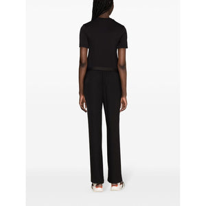 black cotton soft jersey embroidered logo at the chest mini logo tag crew neck short sleeves straight hem Logo cotton t-shirt Size and Fit - This piece fits true to size. We recommend you get your regular size. Model is 1,75m / 5ft 8in wearing size S