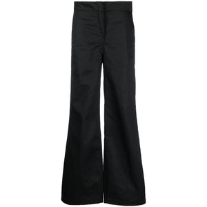 reversed waistband trousers from PALM ANGELS featuring black/white, cotton blend, logo waistband and straight leg. Flare-leg trousers Size and Fit - This piece fits true to size. We recommend you get your regular size. Model is 1,75m / 5ft 8in wearing size S