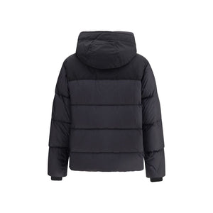 The Tyrik Hooded Down Jacket by Parajumpers features a double-slider front zipper closure and an adjustable drawstring hood. It has two outside zippered pockets, two sleeve pockets and two inside pockets. The cuffs are elastic rib knit, while the hem is adjustable with drawstring. The Parajumpers patch on the sleeve and the iconic yellow tape at the neck closure complete the design.