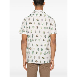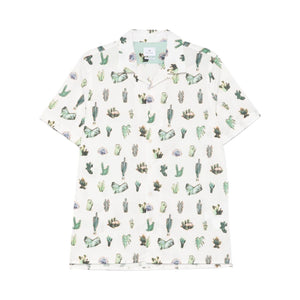 white front button fastening short side slits camp collar short sleeves Printed cotton shirt Size and Fit - This piece fits true to size. We recommend you get your regular size. Model is 1,84m / 6ft 1in wearing size M