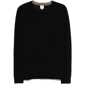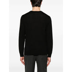black crew neck long sleeves ribbed trim embroidered logo at the sleeve Wool crewneck sweater