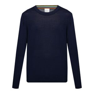 navy blue crew neck long sleeves ribbed trim Wool crewneck sweater