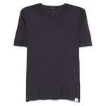 navy blue crew neck short sleeves ribbed cuffs and hem Cotton t-shirt Size and Fit - This piece fits true to size. We recommend you get your regular size. Model is 1,84m / 6ft 1in wearing size M
