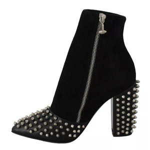 Philipp Plein Black Suede Studded Heels Ankle Boots Shoes