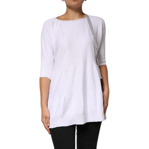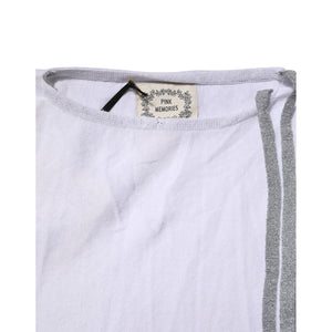 PINK MEMORIES White Cotton Short Sleeves Round Neck Blouse Top