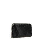 Calfskin Love Baby Shoulder Bag by Pinko, front closure with magnetic button, iconic gold-plated Love Birds logo embossed on the front, quilted and padded design, double internal compartment, sliding chain shoulder strap, iconic brand monogram embroidered tone-on-tone on the back.