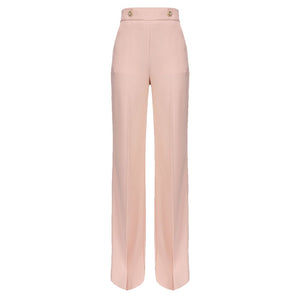 Make a statement with the PINKO Sbozzare 8 trousers. These bold, ripe pink trousers are a blend of sophisticated Italian design and edgy details. Crafted with a comfortable mix of polyester and elastane, they feature a high waist accented by chic buttons, and a unique offset leg cut at the bottom for a touch of avant-garde. Perfect for those who dare to stand out with their style game. PINKO infuses every piece with a sense of daring and trend-focused sensibility.