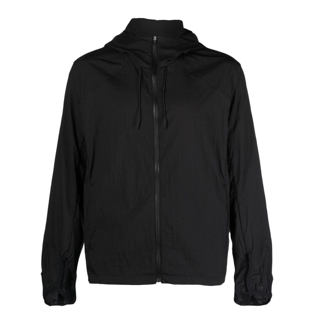 black lightweight ripstop texture water-resistant drawstring hood front zip fastening two side inset pockets elasticated drawstring waistband bonded seams 5.1 Technical Jacket Right (Black) Size and Fit - This piece fits true to size. We recommend you get your regular size. Model is 1,84m / 6ft 1in wearing size M