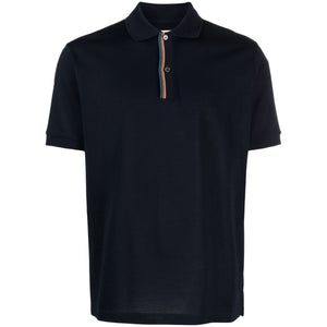 rainbow-stripe cotton polo shirt from Paul Smith featuring navy blue, cotton, rainbow stripe detailing, polo collar, front button placket, short sleeves and straight hem. Signature Stripe cotton polo shirt