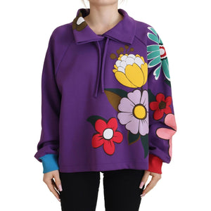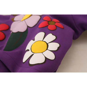 Dolce & Gabbana Purple Floral Print Pullover Cotton Sweater