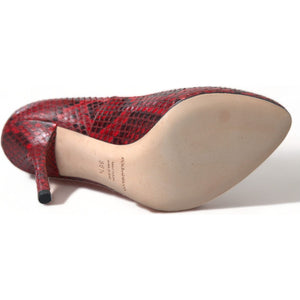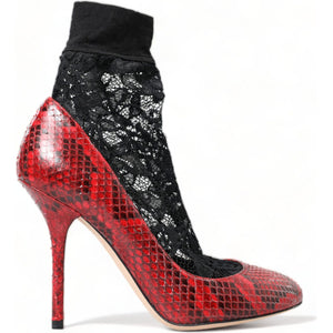 حذاء دولتشي آند غابانا أحمر اللون من جلد الثعبان مع جوارب من الدانتيل
