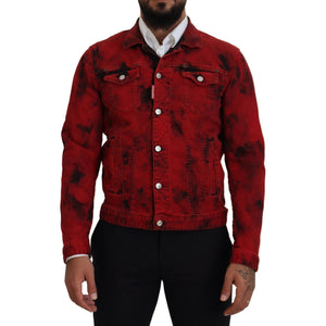 سترة جينز رجالي من Dsquared² باللون الأحمر والأسود مع ياقة